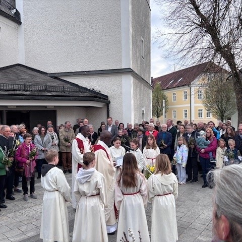 Über 400 Menschen feierten die Palmweihe am Kirchenplatz und die anschließende Leidensmesse in der Pfarrkirche.